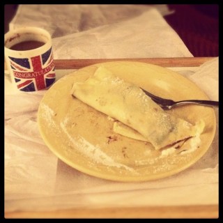 Sunday: Mother’s Day breakfast in bed. Crepe with Nutella & whipped cream. There was bacon too but somehow it disappeared before the picture was taken.